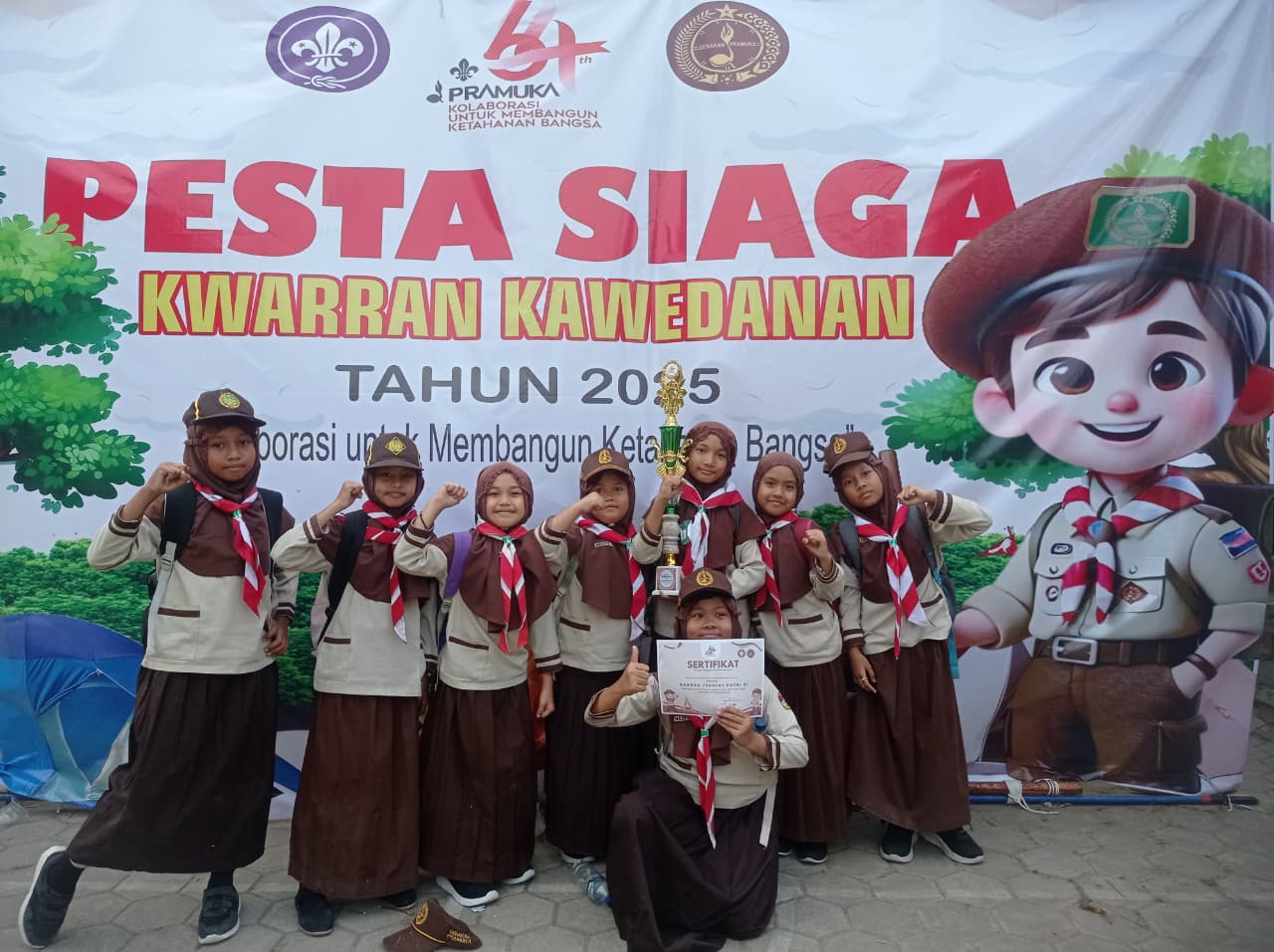Magetan — Suasana penuh kebanggaan dirasakan keluarga besar SDIT Badrussalam setelah berhasil membawa pulang Trofi Barung Terbaik VI pada ajang Pesta Siaga Kwarran Kawedanan 2025. Prestasi ini menjadi kado spesial bertepatan dengan peringatan Hari Pramuka ke-64.