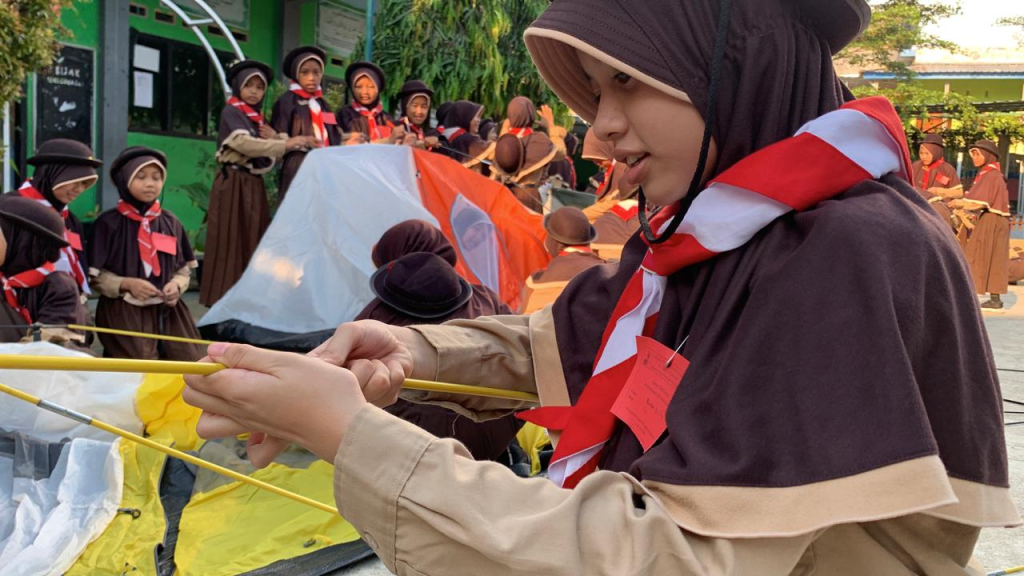 Selain itu, peserta juga berlatih mendirikan tenda. Kegiatan ini melatih kerja sama sekaligus menanamkan nilai gotong royong yang menjadi ciri khas gerakan Pramuka.