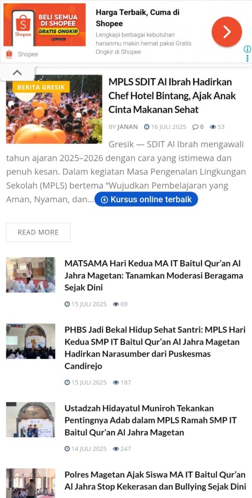 Inspiratif! Siswa SMAIT Al-Uswah Malang Ciptakan Robot Pemilah SampahPasar Raya Meriah, SDIT Lukman Al-Hakim Blitar Ajarkan Siswa Jadi Pengusaha CilikBikin Bangga! Tim Paskibra SMPIT Insan Permata Jember Raih Juara Umum
