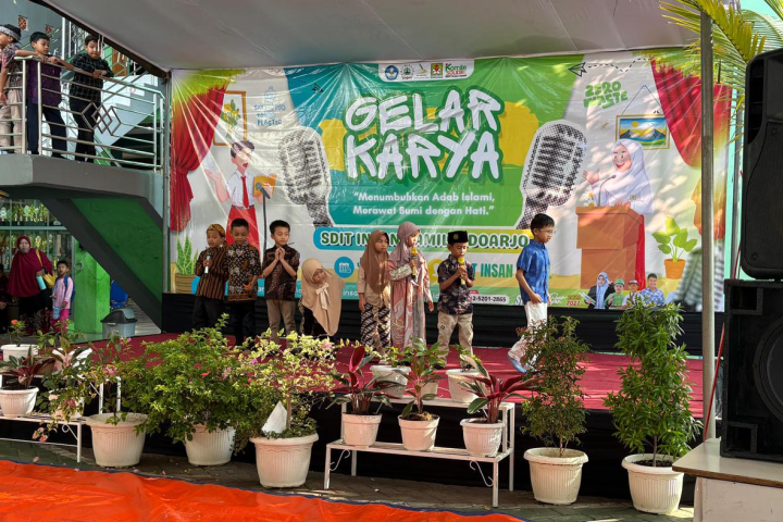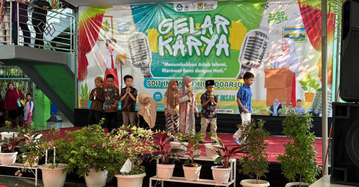 SIDOARJO – SDIT Insan Kamil Sidoarjo membuktikan bahwa pendidikan karakter dan kepedulian lingkungan dapat berjalan beriringan melalui perhelatan Gelar Karya yang berlangsung meriah selama dua hari berturut-turut. Mengusung tema besar “Menumbuhkan Adab Islami, Merawat Bumi dengan Hati”, acara ini menjadi panggung utama bagi murid untuk menunjukkan kompetensi mereka di luar ruang kelas.