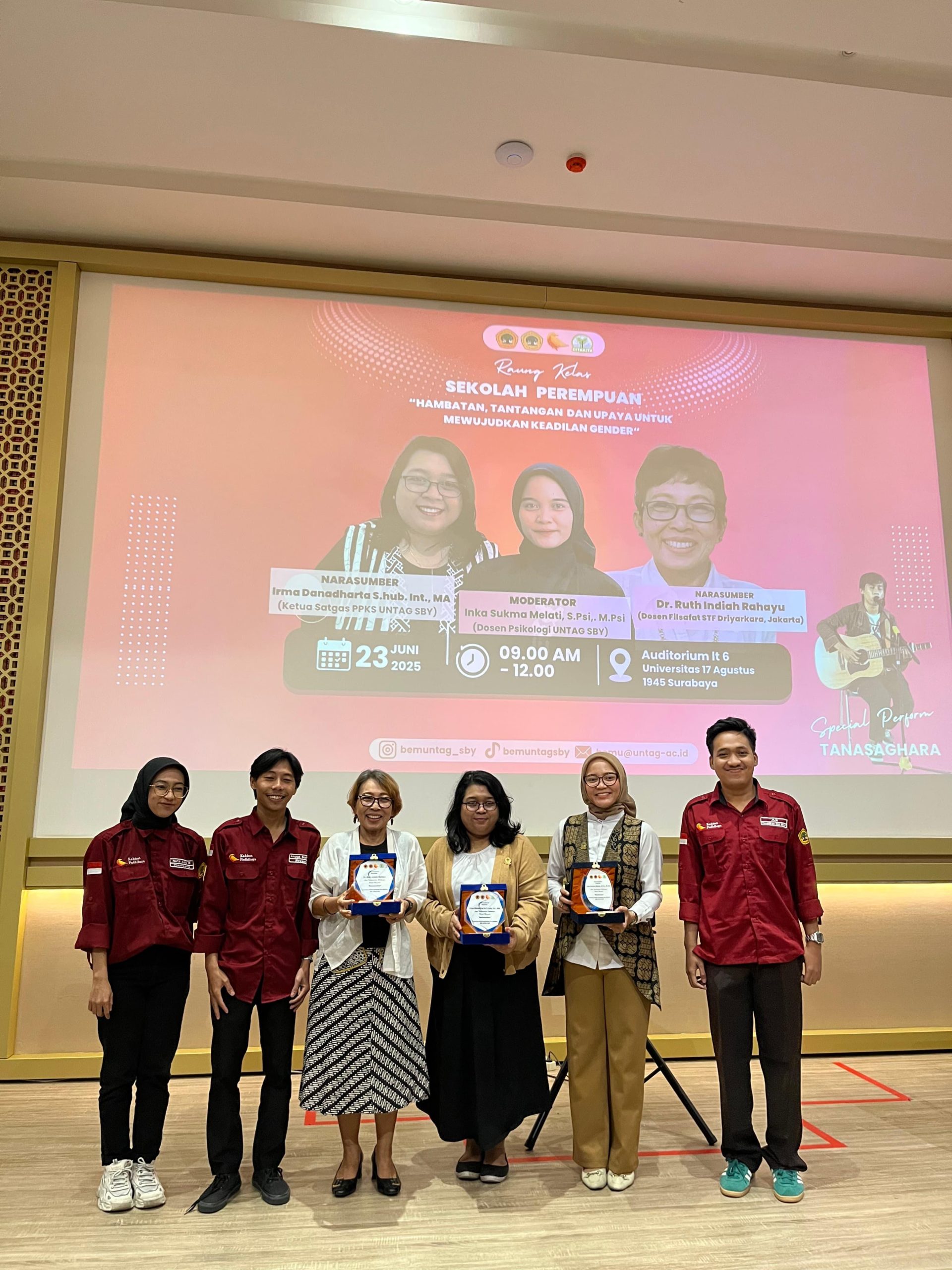 Talkshow inti menghadirkan narasumber kompeten: Irma Danadharta, Ketua PPKS Untag Surabaya, dan Dr. Ruth Indah Rahayu, Dosen Filsafat STF Driyarkara Jakarta. Keduanya membahas hambatan struktural dan kultural dalam mewujudkan keadilan gender.