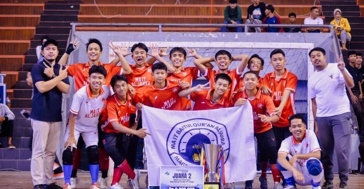 Magetan – Tim futsal MAIT Baitul Quran Al Jahra Magetan berhasil mengukir sejarah baru bagi sekolah. Meski baru satu tahun terbentuk, tim ini sukses meraih posisi runner-up dalam ajang bergengsi Vijayayatra Piala Danyon Parako 471 Pasgat yang digelar dalam rangka HUT ke-24 SMKN 1 Bendo di GOR Ki Mageti, Jalan Yosonegoro, Kelurahan Tambran, Kecamatan Magetan, Kabupaten Magetan.